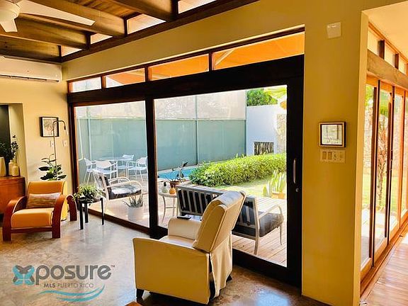 Just listed! Extremely unique single family home inside the gates of the closed area of Ocean Park with YARD and SWIMMING POOL! 3 bedrooms, 2.5 baths. Lots of glass and beautiful features. House can be opened up with sliding glass doors and wooden windows in hall. Gated off street parking. Several separate terraces. Full home generator. Optic Fiber high speed internet ready. Short walk to beach (1 Block). No flooding during Maria. Ability to build up/add another level as well. Lots of closet space, cabinets and outdoor storage room.Perfect for entertaining! A must see!..
