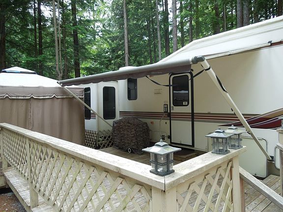 Absolutely enormous 34 foot 5th wheel RV in Paradise Lakes Country Club with not just one slide out but three! Very well kept and clean with everything you need for your home away from home. Nice living spaces inside and a fabulous deck outside including a covered canvas gazebo. Two outbuildings for storage round out a very nice lot with low maintenance and a nice portion of sun. PLCC boasts a indoor pool, playground and so much more. 120 days use per year.
