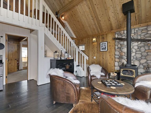 - Interior Features: Vaulted Ceilings, Ceiling Fans, Wood Burning Stove, Fixtures, Furniture, Hot Tub/Spa, Loft, Flooring- Carpet, Flooring- Wood, Dual Pane Windows