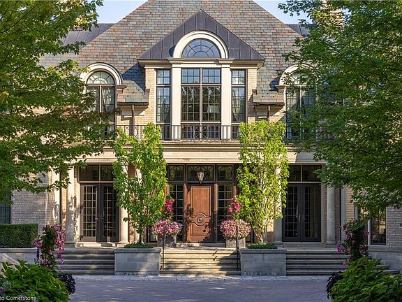 2054 Lakeshore Rd. East is one of Oakville's finest lakefront estates.Situated on 1.6 acres & 164.22 ft of pristine shoreline, complete with deck, & stairway access to the water. Designed by renowned architect Gren Weis & brought to life by the exceptional craftsmanship of Coulson Fine Homes.This magnificent 7-bdrm, 13-bath home spans an impressive 19,210 sq ft.Step into the grand formal entrance where limestone cast walls create a dramatic first impression serving as a prelude to the extraordinary spaces beyond.The residence showcases 12 ft ceilings on the main level, Brazilian walnut flooring thru-out & custom cabinetry adorns this remarkable home.The estate features an expansive living & dining rm w/breathtaking water views, perfect for intimate gatherings or grand celebrations.Step outside to the covered terrace where you can relax to the sounds of the "Bellagio" inspired fountains & waterfall.The gourmet open-concept kit.flows effortlessly into the fam.rm where water views & fp create a relaxed & comfortable space.The lower-level transforms into an entertainer's paradise, w/a state-of-the-art home theatre, gym w/direct access to the infinity edge pool, steam room, golf simulator, wine cellar, billiards area w/rec room & catering kit.A private 2-bdrm nanny suite w/sep. entrance provides additional flexibility.An elevator gives you convenient access to all 5 levels of this thoughtfully designed home.The outdoors offers multiple entertaining areas nestled within the manicured landscaped grounds, the lakefront deck & poolside.The power screened sunroom offers 3 season enjoyment. His&Her double car garages to accommodate 4 vehicles w/additional parking for 15 more on the circular driveway & auxiliary prkng areas-perfect for hosting memorable events.This waterfront estate represents more than just a home it's a lifestyle statement where every detail has been carefully curated to create an environment of uncompromising luxury & comfort. LUXURY CERTIFIED.