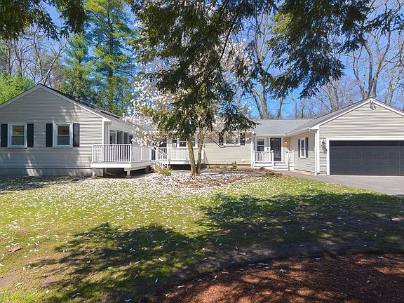 Gracious, well-maintained ranch tucked back off the street on a beautifully landscaped half-acre lot. Ideally situated within 1.5 miles of charming West Concord center, this sun-drenched, 4 bedroom, 3 bath retreat offers a unique blend of privacy and convenience. The heart of the home shines in the fully renovated quartz & stainless steel eat-in kitchen which opens to a living and dining space with gas fireplace, creating a warm flow for entertaining. Versatility abounds with the great room, adaptable as a spacious living space or luxurious master suite, the choice is yours. Hardwood floors unite the interior spaces. Take in the nature and warmth on the sun-dappled deck. Enjoy easy access into the amply-sized mudroom via the attached oversized garage. The full basement provides abundant storage and the opportunity for additional living space.