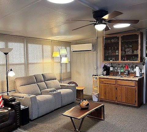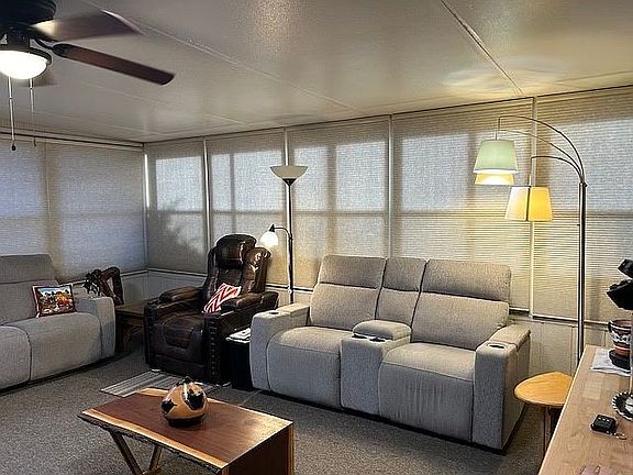 2000 Hallmark, aprox. 1560 sq. ft. 2 bedroom, 2 bath, Den, Furnished, Remodeled Kitchen with R/O ,Updated appliances and tile floors, Washer, Dryer and Ice Maker, New Wood Look Floors, New paint and multiple upgrades throughout home, Finished Arizona room with carpet, blinds, built in bar, extra refrigerator/freezer, mini split AC, Pergola covered back patio, Enlarged shed with workbench, Automatic drip system, Solar Panels on roof, Golf Cart included.