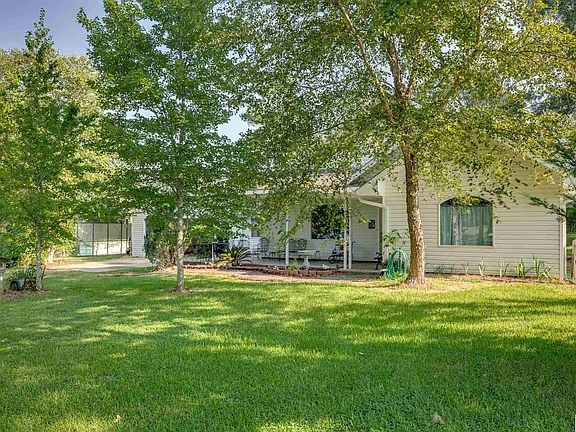 A lovely, well maintained, custom built 3 bedroom 2 bath home awaits your arrival at the end of a long tree lined driveway. This property is situated on 2.115 acres with mature trees, raised bed garden, vineyard, fenced in back yard, and storage building. Notable features in the home are the cathedral ceilings in the living room and master bedroom, and a peaceful sunroom with brick paver floors. In the living room there is a large armoire/entertainment center with an inset gas log fireplace that will remain with the home. Additionally there is a large craft room and workshop connected to the house through the garage. Both are insulated and climate controlled. The workshop has a roll-up overhead door as well. Washer, dryer, and refrigerator all to remain with acceptable offer.