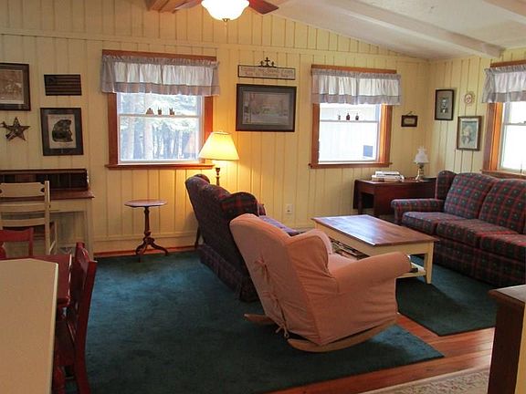 Newly renovated, move-in ready beautiful Ranch home on 1.7 + acres.Great room has beamed ceilings,stone fireplace w/ wood burner & new titanium flu.Eat-in kitchen has center island & appliances included.2 bedrooms w/ closets & laminate flooring.Full bath with tub/shower, linen closet & stack able washer/dryer.Detached 30 x 40 garage w/ extra tall doors, above is finished 2nd floor plumbed for sewage,electric run & heat.ALL FURNITURE INCLUDED.Covered front porch.Access to lake & boat deck.**LOCATED BY GOLF COURSE** Call today to schedule a tour!