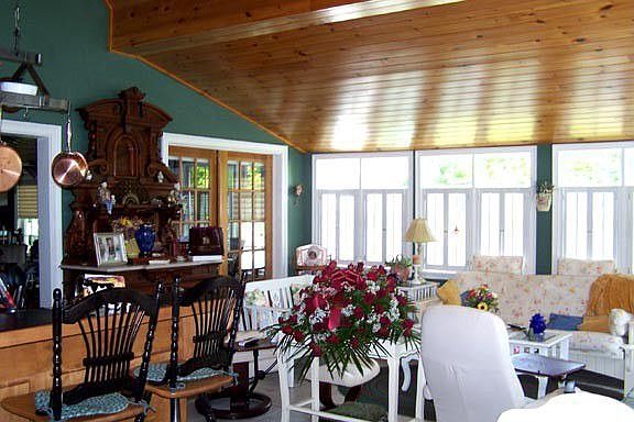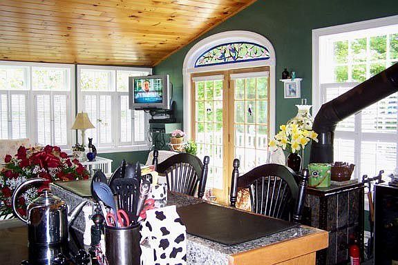 PICTURE PERFECT COUNTRY FARMHOUSE Beautifully restored circa 1900 farmhouse. Cathedral ceilings and open kitchen/living area with a soapstone wood stove and lots of windows. Nicely appointed kitchen with granite countertops, a lovely front porch along with a separate three season porch. This home has lots of extras, decorative ceilings, hardwood floors, stained glass accents, along with 2 septic systems.