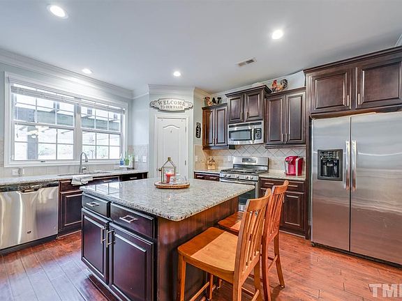 Live in a single family home w/ a PRIVATE LOT in coveted Bella Casa for ONLY $385K? WOW! Opportunity to own in Apex's most sought after n'hood at a rarely available price. Wide plank hardwoods & oak stairs. Private main level office. 1st floor guest suite w/ full bath. Open layout: kitchen w/ center island, NEW gas range, granite tops. Family room w/ raised hearth gas FP. Lovely master w/ roomy WIC. Trellis covered paver patio w/ views of fully fenced lot, backing to mature trees. Great n'hood amenities!