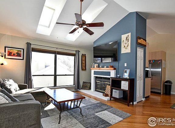 Bright Spacious, fully updated 2 bedroom Townhome in mid-town FC. Walking distance to Rolland Moore, CSU and Spring Creek Trail. End Unit with minimal shared walls. Dual Skylights serve to accent the Bamboo floors throughout the common spaces as well as the wood burning fireplace. Kitchen has been updated, soft close cabinets and SS appliances. French doors open to both bedrooms. Layout is perfect for a small family or roommates. Top floor bedroom has walk-in closet, full bathroom attached and offers some front range views. Owners suite in lower level leads out to patio and shared green space behind. It has 3/4 bath attached. New central air conditioning installed in 2020. FX Connexion has begun installation of high speed fiber. Hurry, this won't last long.
