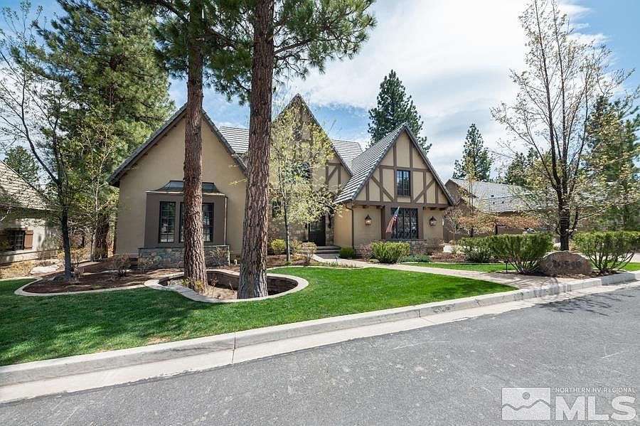 Back on Market at NO fault of the Seller. Buyer was unable to perform on day of closing. Home is ready for quick close. This former Les Maisons semi-custom model home is the best in french country located in the coveted Montreux gated community and Country Club, home to Northern Nevadas only Championship Jack Nicklaus golf course. Boasting beautiful exposed wood beams, soaring ceilings, gorgeous well maintained hardwood floors, and double-pane wood framed windows, this home is a masterpiece. Enjoy the tranquil view of the HOA maintained common area, offering walking trails, a stunning water feature, and dry creek. Home features majestic lime stone fireplace, matching hood over La Cornue french range. New Pro Line Sub Zero built-in refrigerator/freezer; Sub Zero wine fridge, New Bosch dishwasher, Thermador convection oven & microwave. Recently expanded back patio with new old stone pavers surrounding sunken hot tub and fire pit surrounded by aspens and maple trees. Backyard is fully fenced offering privacy and safety for your pets. Home has new Water-tech water filtration system, instant hot water, new carpets, linen drapes in living room and Primary bedroom; custom window shades in all other en-suite bedrooms. Designer paint and light fixtures (including custom made cascading deer antler chandelier in foyer) and California closets. Three car garage with epoxy floors, Covered outdoor patio with huge rock fireplace, and Heated copper gutters. The transfer of a Sports Membership can be negotiated separately (transfer fees will apply). Most Furniture and Furnishings available and negotiable outside of escrow.