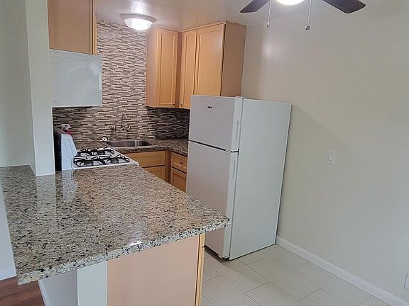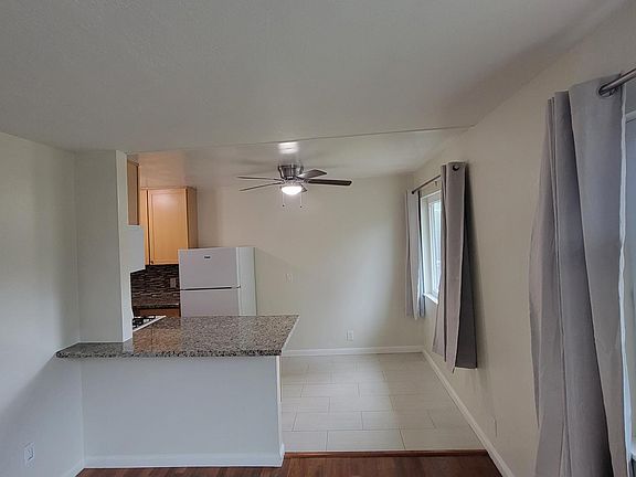 Located in Castro Valley, this small one-bedroom apartment is back away from the street in a duplex. The unit was remodeled with new kitchen cabinets, granite counters, new bathroom, new flooring, and new ceiling fans. It get's great light on three sides. There is free off-street parking. Sorry no laundry facilities. We rent to indoor only cats for $30 per month. Gas and water is provided for $40 per month. Tenant pays Electric and Internet. One year lease. Non smoking unit.