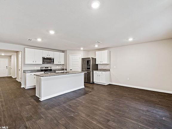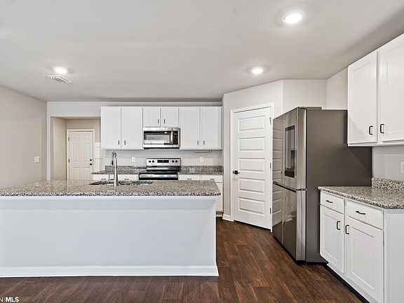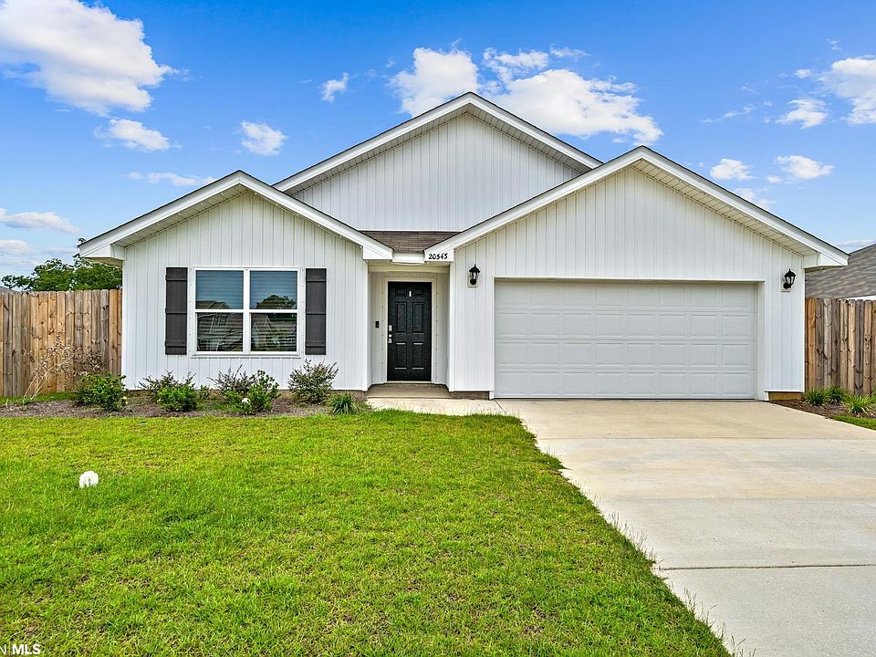 Grove Parc is in a great location close to town, schools, and near the Baldwin Beach Express which will get you to the beach in minutes! This gold fortified home is situated on a corner lot and offers a split floor plan. As you enter, you're welcomed by a stylish board and batten accent wall in the foyer and beautiful luxury vinyl plank flooring that flows seamlessly throughout the entire home. The kitchen is fully equipped with stainless appliances, a large island with bar seating, and a pantry with wood shelving. It seamlessly connects to the breakfast area and living room, creating an inviting and functional space. The master suite is situated off the living room and features a spacious ensuite complete with a double vanity, garden soaking tub, separate shower, and walk in closet. The laundry room has an accent wall and a custom wood shelf for storage that adds character to this space. Enjoy the privacy of your newly fenced backyard, complete with a spacious covered patio that is perfect for summertime BBQ's. Additionally, you can enjoy the convenience of a double car garage. This home has been well maintained and is move in ready!