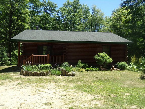Country Charmer! Located in beautiful Marilla Hills. This solid built log sided home was framed with 2x6 construction in 2004 and sits in the middle of a rolling wooded 10acre+/- parcel adjoining the Manistee National Forest. Featuring Oak flooring throughout the entire main level which includes 2 bedrooms, 1 full bath, dining area, living room and kitchen accented with rich hickory cabinets. The lower level has 2 bedrooms 1 bath and laundry area. Sit & enjoy all that nature has to offer from the full length 36 x 10 deck in back. This home is well insulated with 6 inch batt in walls & 12 inch in the ceiling. Poured concrete walls, sump pump, 200amp electrical service, 5 inch well and custom built log railings. There is a 48 x 32 pole barn with 10' side walls for all your storage needs.