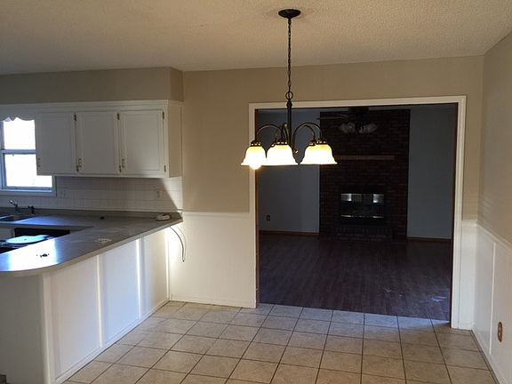 Large ranch-style home three bedrooms, two bathrooms and two family areas and eat-in kitchen. Beautifully updated home with new fixtures and ceilings fans, new kitchen appliances and neutral paint colors. Outdoor storage shed on .75 fenced in yard. Attached garage. Located just outside the West Gate of FLW. Short drive to downtown Waynesville and Saint Robert shopping.Tenant pays all utilities.