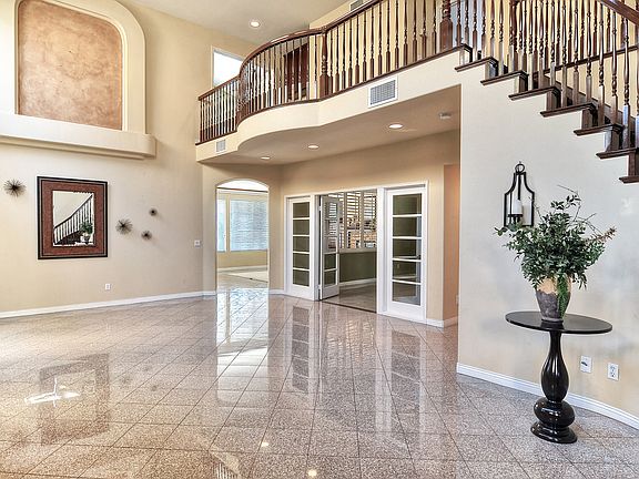 Highly Desirable cul-de-sac location and VIEW home in the prestigious Traditions at Eastlake. Home features 5 bedroom, 4 bathroom approx 3128 square feet of living space, upgraded island kitchen w/vegetable sink, granite counters and flooring, five burner stove top, reverse osmosis, and a large dining nook. Full bathroom downstairs, inside laundry, open floor plan with huge living room; soaring ceiling; recessed lighting and lots of windows offer natural light. Private office (5th bedroom) on the first floor w/ custom interior French doors and white wood shutters. Family room w/raised stone fireplace hearth, coved lighting, built in entertainment ctr including components, wired for surround sound and outdoor speaker system. Dramatic staircase w/designer carpet. Spacious master suite with engineered wood flooring, white wood shutters, and exterior balcony to enjoy your panoramic view of hills and city lights. Spacious master bath with view from jet tub, Master bath also features his and her sinks, over sized walk in closet & separate shower. Large secondary bedrooms each offer an adjoining bathroom and new carpet. Additional property amenities include, central vacuum, water softener, ceiling fans throughout, built in BBQ area & drought tolerant landscape.