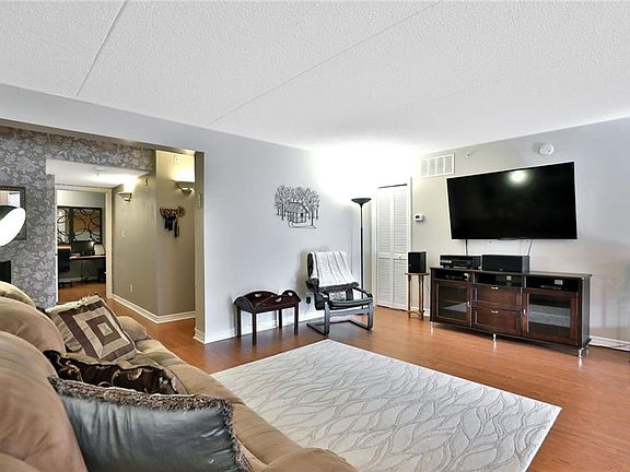 Gorgeous 3 Bedroom unit recently updated with freshly painted walls. Laminate flooring with no carpet, 1353 square feet, This adapted 'Stanford' model has a beautiful layout. The kitchen features stainless steel appliances, upgraded Kitchen cabinets faces, pull out shelves, a walkout to the balcony and a breakfast bar counter top. The Master Bedroom retreat includes an alcove windowed sitting area and 3 piece en-suite. Plus 2 more well sized Bedrooms. Convenient in suite laundry. Neutral decor throughout. Great location to catch public transportation and close to highways and the 407. Walk across the street to 2 major shopping plazas and numerous restaurants. The living and dining room will accommodate many furniture layouts! Close to Tansley Woods amenities. Ideal home for first-time buyers or for those that want to move to a different style of living - turn the key and go! Orchard Uptown is a great place to live! The complex also features a party room and fitness area. Underground parking spot #93, Locker #43. Kitec plumbing has been removed.