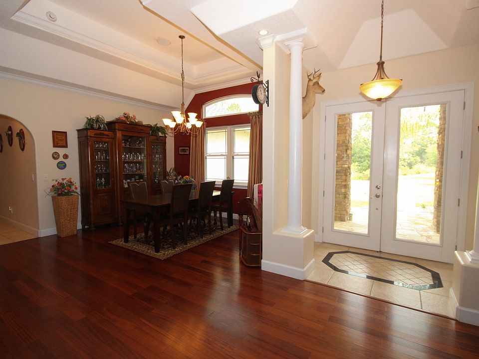 Country Refuge! Beautiful Custom Built Designer Home with peace, quiet and wildlife. Quality craftsmanship throughout PLUS room to store all your toys on 5 High & Dry acres. Horses are welcome too! No Flood Insurance required! Double French door entry invites you into elegant living and dining areas with accent lighted tray ceilings. Next is the Chefs GOURMET kitchen where the party starts - plenty of storage in custom cabinets with pull-out shelves, large island with cooktop range (perfect for entertaining), stainless steel appliances including a double oven, and quartz granite counters. The party can continue through French doors to the 21x30 screened lanai complete with summer kitchen (granite counter tops, sink, refrigerator, flagstone flooring and concrete ceiling to keep you cool). You will love the 3-way split floor plan that is great for privacy with oversized bedrooms with new tiger stripe bamboo flooring. The workshop (25x30) includes 3 additional car bays with roll up doors, 110 & 220 VAC, a head and air compressor room? RV parking pad with power and water is ready for hook-up! No well water here Municipal (private) with filtration system installed for complete property! There are just too many upgrades and custom features to list here- please ask for the Features List. The location cannot be beat- Quiet Country Living yet only 1.5 miles to St. Johns River boat launch, easy access to Sanford, Oviedo, Orlando or Cape Canaveral. Dont miss this opportunity to have it all!