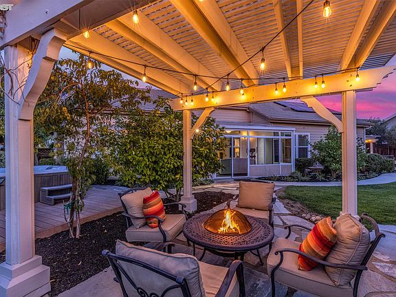 Enjoy beautiful sunrises from your East facing front porch! And watch the sun go down in the backyard while enjoying a glass wine from your spa! Spacious yard has room to run, play and relax! with built-in fireplace, water features and garden area. Two storage sheds to stash your stuff. Pre-paid solar electrical system. Well planned floor plan is great for entertaining family and friends. Home features 4 bedrooms plus a stunning office and approx. 257 SF permitted Sunroom perfect for rainy day exercise, play room or just reading a book. The fabulous kitchen with it's large center island and top-line appliances are a gourmets cook's dream. The light filled primary suite will be your refuge at the end of the day! along with spa-like primary bath and beautiful walk-in closet. All this and you're just minutes from Livermore's Downtown Farmer's Market, award winning restaurants and shopping! And gorgeous parks, trails, wineries and craft breweries. Come enjoy all Livermore has to offer!!