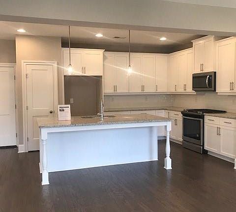 • Kitchen Features: Breakfast Bar, Eat-in Kitchen, Pantry, View to Family Room, Stone Counters, Kitchen Island, Solid Surface Counters, Cabinets Other