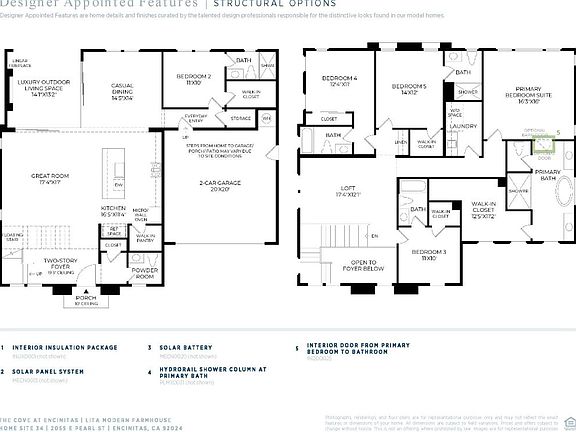 This brand-new home offers 3,120 square feet, 5 bedrooms, 5.5 baths, and a second-floor loft. The striking two-story foyer with floating stairs leads to an expansive great room just beyond. The first floor offers a bedroom suite complete with a private bath and walk-in closet. A large loft space on the second floor creates a space that is perfect for the way you live. The great room brings the outdoors inside with the 90-degree corner multi-slide door opening to a spacious covered outdoor living space with a linear fireplace. Other highlights of this home include a solar panel system, a solar battery, and enhanced recessed lighting and low-voltage packages. There's still time to personalize this beautiful home with Design Studio upgrades! Disclaimer: Photos are images only and should not be relied upon to confirm applicable features.