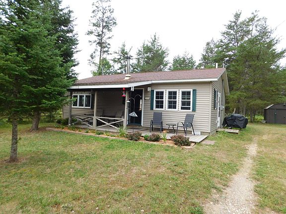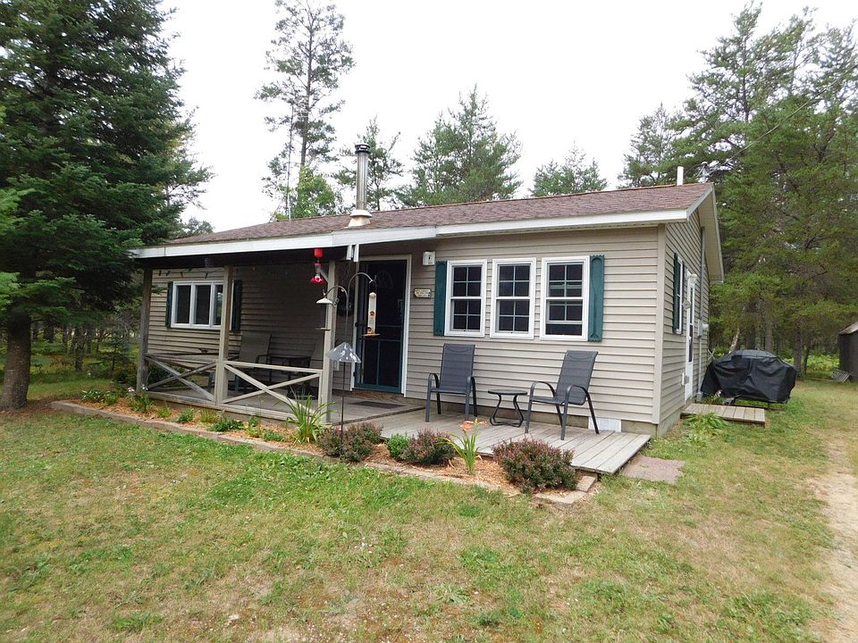 Cute and cozy up north fet away! This home sits on 4 lots located in Warbler's HIde-Away with access to the shared river frontage, pool and clubhouse. There are two bedrooms and one bath, wood burning unit for those cold winter nights and a wall furnace. Vinyl windows, extra insulation, landscaped and shed. Come check it out today!!