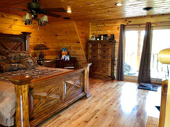 This beautiful log home offers a mountain view with over 3,000 square feet of living space, home includes 3 bedrooms, 3 baths with 2 extra rooms that can be used as additional bedrooms or offices. Very Private master suite with walk-in closet, balcony and fireplace, living room also offers a fireplace, kitchen has a large pantry, home has large wrap around porch that would be great for large family gatherings or entertaining.
