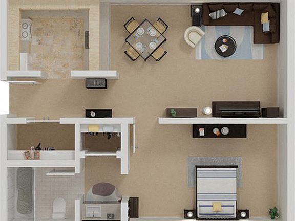- Spacious One Bedroom One Bath Apartments