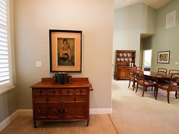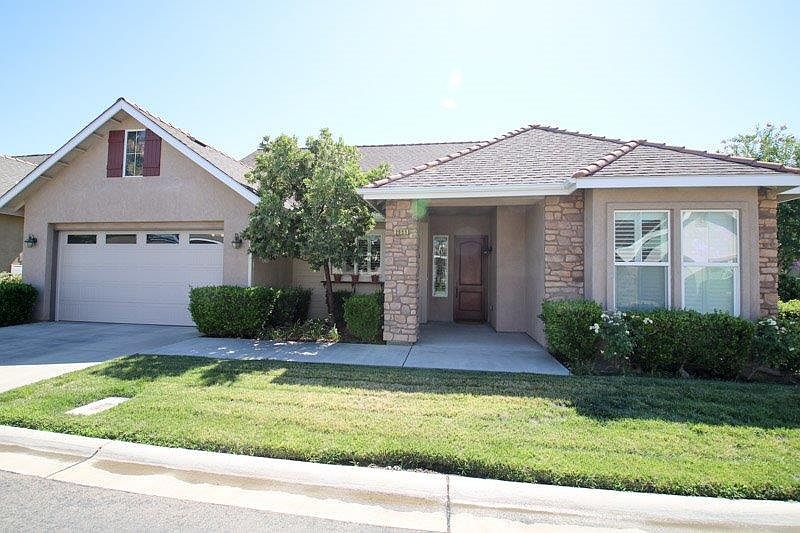 The charm of this community can not be denied. Gated Senior living, 62 plus, at it's best. Move in ready 3 bedroom 2 bath with open floor plan. Great home for entertaining with roof line covered patio. All floors are tile or carpet. Large living and dining area with beautiful custom paint. Living Room has cozy fireplace plus french doors to the patio. Beautiful custom shutters through out. Tile kitchen counter's with breakfast bar and fridge. Both bathrooms have shower and bathing options plus storage. Spacious master bedroom, Indoor laundry and 3rd bedroom has double doors to access from living area for office option or Den. Large finished garage with storage closet for those extra items like Christmas decorations or tools. This beautiful senior gated community gives you all the Serenity you dream of. Gorgeous grounds with walking path and fountain view from patio.