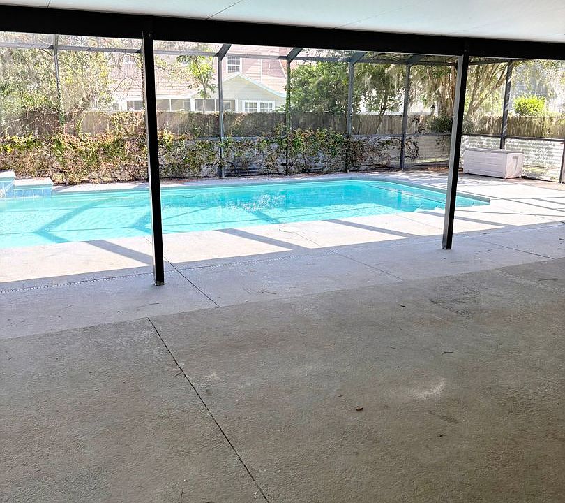 This Great SE Ocala Pool Home has 3 bedrooms, 2 bathrooms, a bonus room that can be used as a den, family room, or fourth bedroom (has a closet) in addition to the spacious living area with fireplace and lots of natural light, a formal dining room with adjustable lighting, a kitchen with beautiful 42" cabinets, solid surface counters, closet-style pantry all adjacent to the breakfast/study area which overlooks the gorgeous inground pool, patio, and shady back yard. Weekly pool maintenance included in the rent. No pets please (new carpet). Qualified renters will receive $1000 off their second months rent.