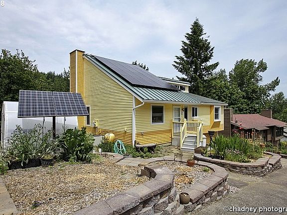 Amazing Custom Home w/Soaring Ceilings, Huge Windows & Custom Architectural Design. 2 Main Floor Bedrooms a Huge Living Room flows into a Nice Dining Area & Custom Kitchen. Upstairs is a Spacious Loft. Lower Level is a Nice Family Room, Laundry Room & 2nd Full Bath. .31 Acre Lot w/Walking Trails, Picnic Area, Rain Garden, Green House with its own Solar Panel. Solar Panels on House connected with PGE. Too many extras to list!!