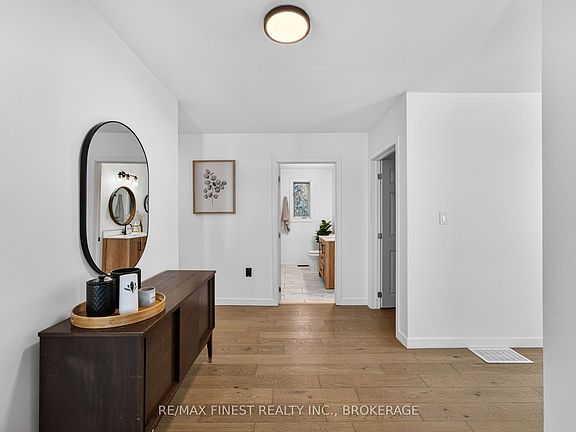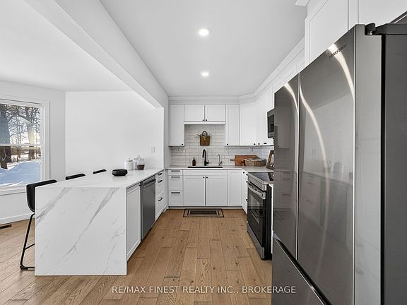 Welcome to 2055 Switzerville Road, a beautifully renovated all brick bungalow set on just over an acre of peaceful countryside, complete with an attached one car garage. Thoughtfully updated from top to bottom, this move-in-ready home blends modern finishes with timeless rural charm. Step inside to discover quality craftsmanship throughout, beginning with a bright eat-in kitchen featuring a striking waterfall island, generous cabinetry, and a seamless flow for everyday living and entertaining. A spacious separate dining room, framed by large windows, fills the space with natural light and scenic views. The main floor offers a private primary retreat with a three-piece ensuite and ample closet space, along with a second bedroom and a four-piece bath. Downstairs, the fully finished walk-up basement provides exceptional additional living space, including a cozy rec room warmed by a woodstove, two well-sized bedrooms, a three-piece bathroom, and a utility room with abundant storage and direct access to the garage. Outdoors, enjoy the tranquility of country living with a newly installed deck, gazebo, and an inviting in-ground saltwater pool that is perfect for long summer days and memorable gatherings. The expansive yard offers plenty of room to relax, entertain, or simply take in the surrounding natural beauty. Notable updates include a heat pump (2023), kitchen renovation (2023), woodstove (2024), metal roof (2024), pool liner (2022), pool pump (2024), and salt cell (2025) and so much more. This exceptional property offers the comfort of a modernized home paired with the serenity of an idyllic country setting. A true retreat close to town but far enough away to be immersed in the countryside.