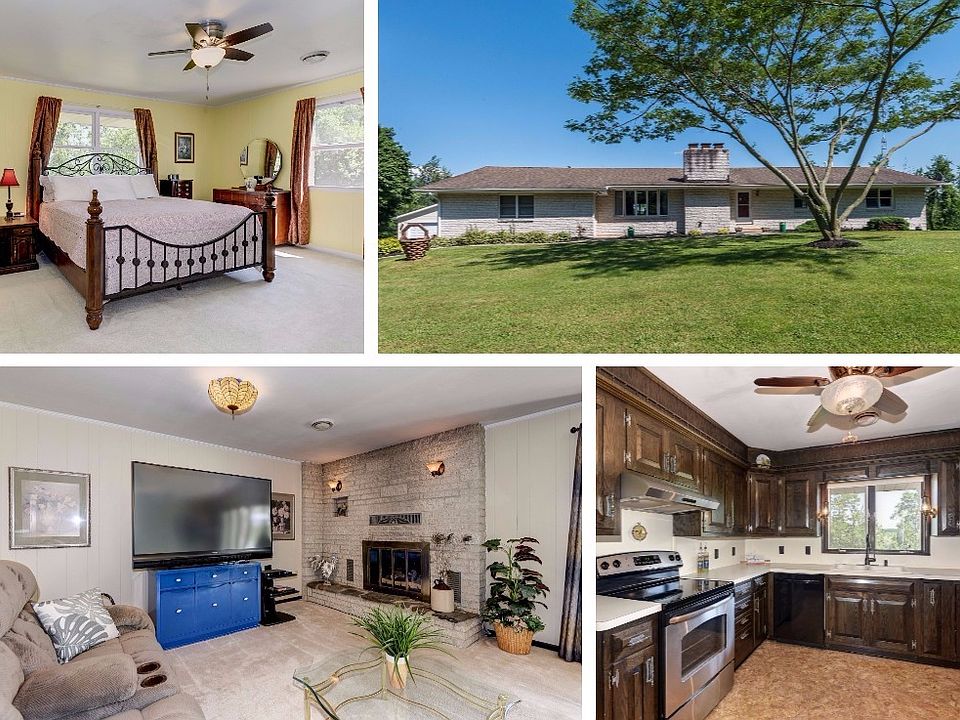 Beautiful, private brick rancher featuring 4 bedrooms, 4 bathrooms and a full basement. Home includes an attached 2 car garage and detached 3 car garage. This rancher also features 2 fireplaces with glass doors, one in basement and other in main level living room. Property has a second house with 2 bedrooms and 1 bath, a great opportunity!