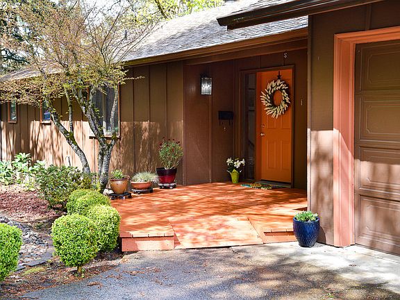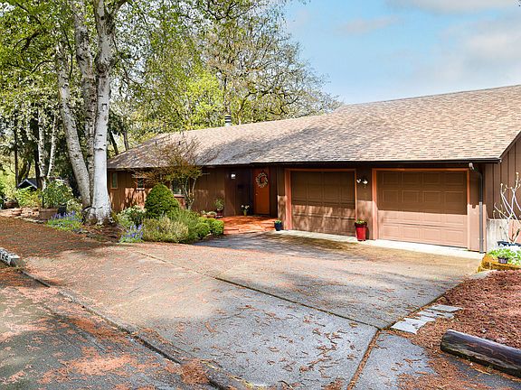 Beautiful view! Fantastic SW hills Eugene neighborhood! Charming home with wood French doors that open to upper & lower decks. Enjoy the view, well manicured terraced garden. Lots of natural light. Main level has the primary bedroom, 2 bathrooms & office with built-ins. All stainless steel appliances in kitchen & washer/dryer will stay. Family room, full bath with sunken tub, additional 3 bedrooms on lower level. Good sized rooms. New roof 2020! Oversized 2 car garage.