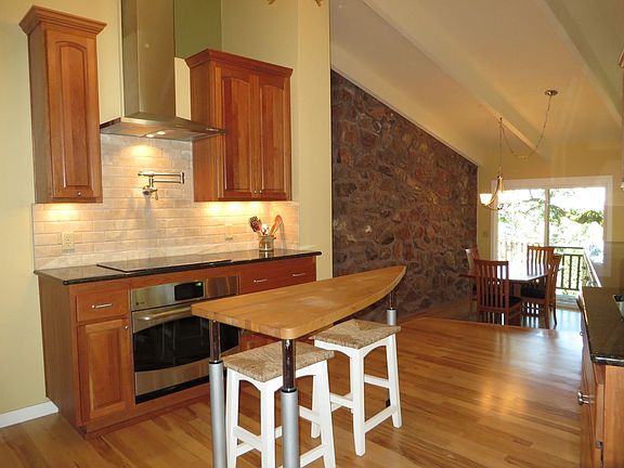 Huge Price Reduction on Sophisticated High-End Remodel! Gourmet Kitchen w/ Granite Slab, Stainless Appliances, Cherry Cabs, Maple Floors. Living and Family Rms w/ Vaulted Open Beam Ceilings, Walls of Windows, Sliders to Huge Deck, Gorgeous View. Main Level Master w/ Huge Closets, Double Sinks, Tile Shower, Newer Hot Tub. EZ Care Yard, Tranquil Flagstone Courtyard, Cable Rail Fence. Covered Carport, Mudroom, Lots of Storage, Move In Ready!