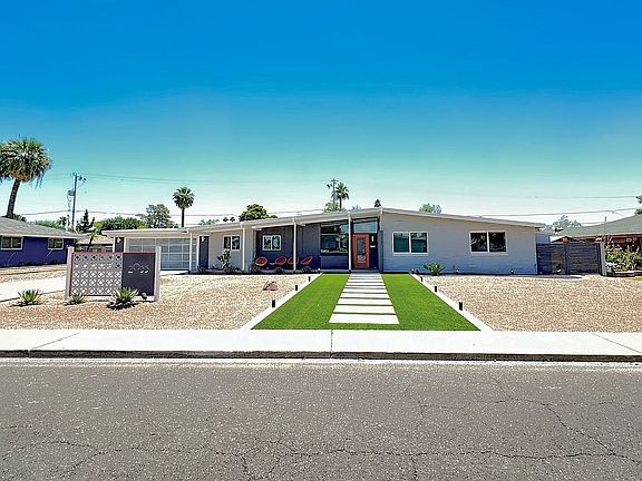 MID-CENTURY MASTERPIECE! Originally custom built by mid-century contractor, Paul Staman, (an understudy of famous mid-century architect, Ralph Haver) Built as his personal residence, completed in 1957. Angled roof-lines, unique customized windows, ceiling beams extend through the glass onto patio. Over 10 foot ceilings. Modernized while preserving the history and components that made this home a 1957 masterpiece. Great room concept, open floor plan! Everything has been updated or replaced. Electrical, plumbing, windows, insulation, cabinetry, electric blinds, appliances, flooring, low maintenance yard, Rv parking etc... Sitting on almost 1/3 acre, North/South exposures. Two car, WiFi connected garage with enormous wall mounted high end cabinets/drawers locker system, workbench. Overhead bin storage, 17’ x 6’ secure storage room, additional custom built secure tool/storage shed outside.Tesla wall mounted EV Charger is included. Encanto Estates…the Best Kept Secret in all of Encanto, with only 3 streets of estate sized lots. Hidden in a small pocket neighborhood. Home displays true pride of ownership. NOTE *** Also available with purchase of this home/property are Custom Architectural Plans for a Beautiful 767 Sq. Ft. Mid Century Modern, 1 Bedroom/1 Bath, Casita, Office or ADU. Plans include enclosing existing back patio, increasing home’s square footage, extend outdoor living space with Modernized Landscaping, MCM Pool Design, increasing the use/value of this property! The Encanto Home, Property and Neighborhood is ideal for a family, or investors wanting to add to their investment/income portfolio. (Turnkey option available). No HOA. A very unique opportunity and wont last long! Apppintment Only Owner/Agent 480-479-7999