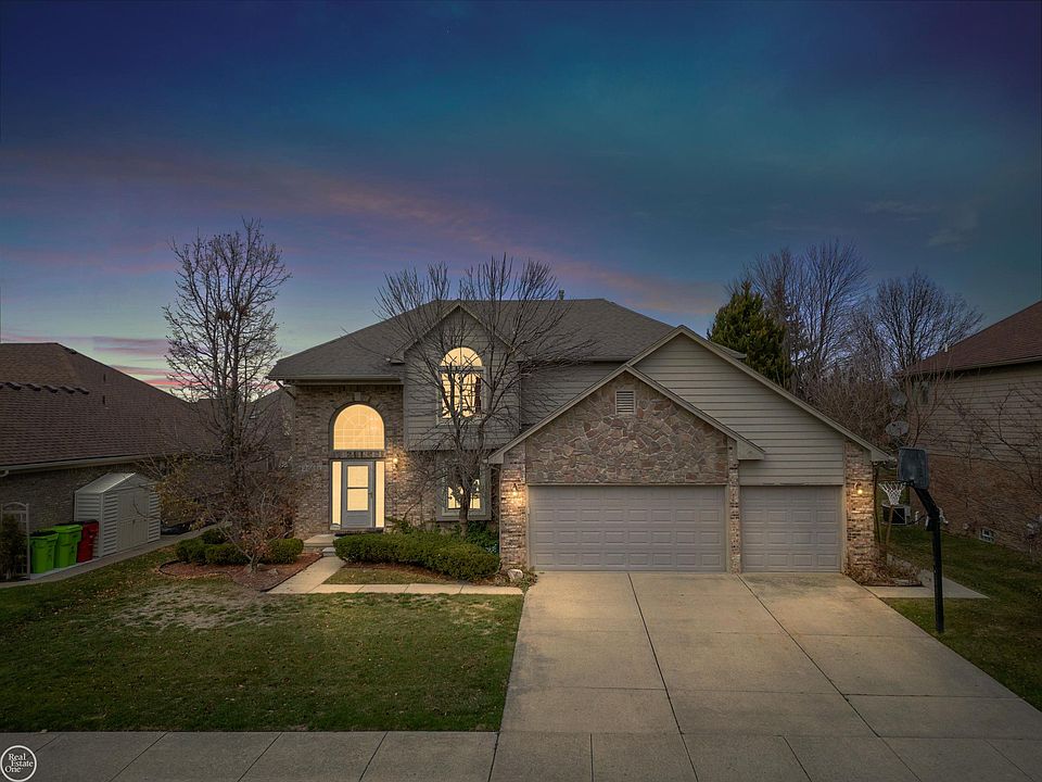 Pending-Contingent. Accepting Backup Offers! Now is the opportunity to own this 2-story home in Macomb Township! Built in 2000 and located in the Deerfield Manor subdivision, this colonial is ready for you to call home. This 2-story brick home near Dakota High School features a 3-car attached garage, hardwood floors throughout most of the home, a spacious open floor plan between kitchen and living room. The living room has 1 of 2 fireplace and plenty of space for entertaining. Two staircases in the home- one in foyer and one off the kitchen will lead you to the second floor, where you will find a Master-suite with a gas fire place, full bathroom with separate shower and bathtub, double sinks and two walk-in closets. The second floor has two other bedrooms which are separated by another full-bath. One of the bedrooms has new laminate flooring and was updated to be used as a creative/recreational space. Each bedroom has a walk-in closet. The kitchen features all Frigidaire Gallery appliances and a GE Compact-all garbage compactor located in island. Back yard is large and has stamped concrete pavers for your patio off of kitchen door-wall. Basement is currently unfinished and waiting for your personal use of space. Very clean and organized home ready for a buyer! Turnkey!