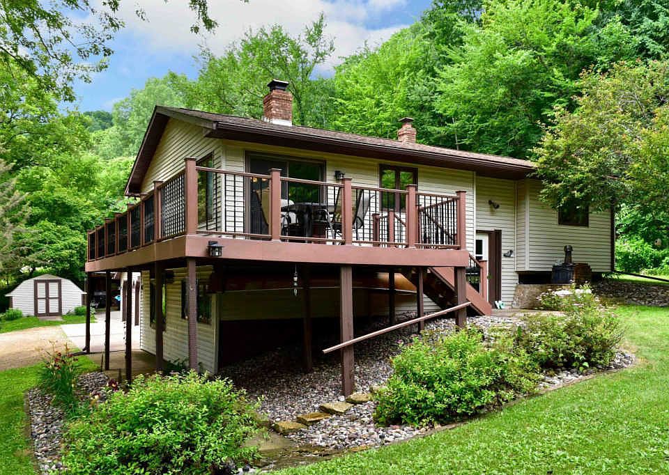 Plenty of privacy on this 3 acre wooded lot. Home features 4 beds, 2 baths, large family room and a wood burning fireplace to help save on those winter heating bills. Enjoy beautiful views of nature from every room in the home. The large wrap around deck is perfect for entertaining with a brick pizza oven on patio below. A large insulated/heated garage makes an excellent place to work on projects. There is also a storage shed & large lean to for additional storage space. Lastly enjoy wooded nature hikes and fabulous hunting on this property.