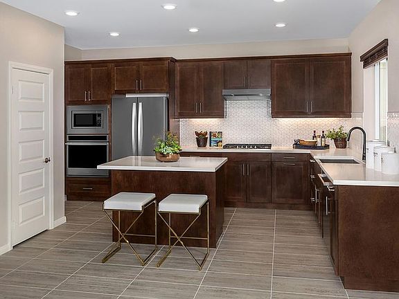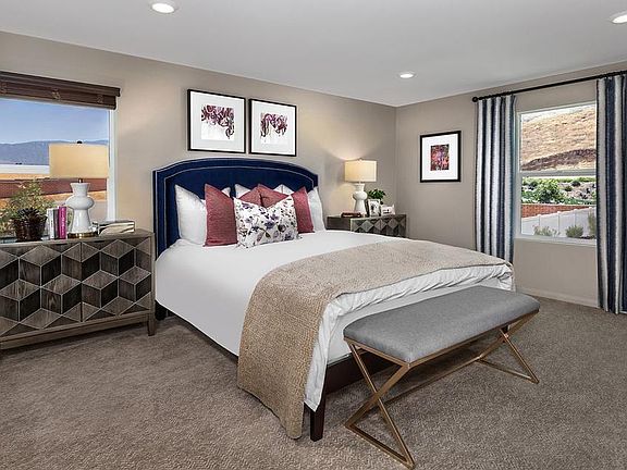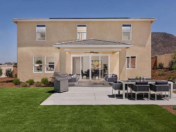 This stunning two-story home features 5 bedrooms, 3 bathrooms, a spacious living room, and a versatile loft. The fully landscaped front and back yards add to its curb appeal. Inside, you'll find an open-concept layout with soaring 9-ft ceilings on the first floor. The modern kitchen is outfitted with recessed-panel maple cabinets, quartz countertops, under-cabinet lighting, and stainless steel Whirlpool appliances including a microwave/hood combo, refrigerator, dishwasher, double oven, and gas range. Bathrooms offer elegant maple cabinetry, cultured marble countertops, and sleek undermount vitreous china sinks. Energy-efficient highlights include LED lighting by Generation Lighting, Moen WaterSense faucets and showerheads, a tankless water heater, and a SunPower solar system that may help lower utility costs. Located near parks with walking trails, sand volleyball courts, and plenty of outdoor activities this home truly has it all. Renter is responsible for water, gas, electric and landscape maintenance. Last month's rent due at signing. No smoking allowed. Small pets (up to 20 pounds) permitted.
