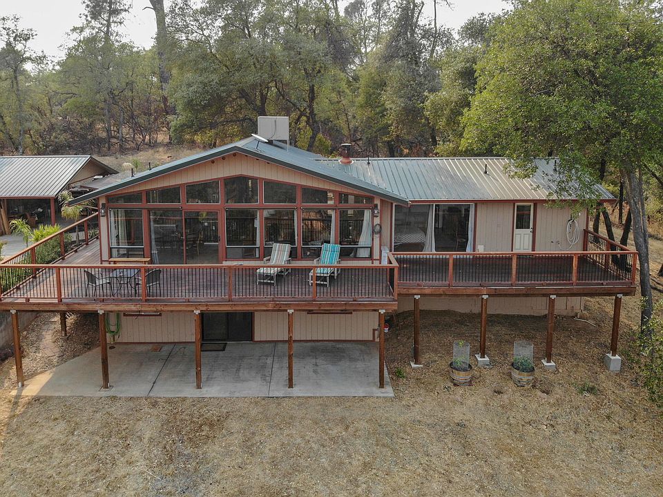 Country living close to town! This beautiful home on 2 acres has spectacular mountain views off the huge porch. A great room with vaulted ceilings boasts a wall of windows overlooking the trees and mountains. Very private setting! Owners suite, kitchen, great room, laundry and 1/2 bath on main level. Lower level has 2 bedrooms, small living space, full bath and kitchenette. Could be perfect airbnb or in-law unit! Property also features a metal roof and an oversized 2 car detached garage!
