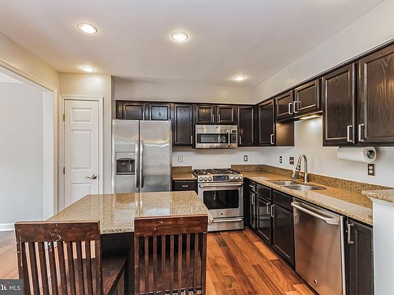 Welcome home to this beautiful 4-bedroom, 3.5-bathroom townhome! This home features a 3-level bump out providing additional square footage for you to enjoy! The newly-replaced front door opens to reveal beautiful hardwood floors throughout the main level, creating a warm and inviting ambiance. You will love the open concept layout of this level that makes entertaining seamless! The updated kitchen features beautiful hardwood floors, less-than-5-years old microwave, refrigerator, and dishwasher and ample cabinetry and countertop space. Adjacent to the kitchen is the bump-out space featuring large sliding glass doors that lead out to the spacious back deck - the perfect outdoor dining space to enjoy a morning cup of coffee or entertain friends. On the upper level you will find the luxurious primary bedroom suite, including an enormous walk-in closet and a private en-suite bathroom that features a double-sink vanity, soaker tub, and walk-in glass shower! This level is completed by two more bedrooms and a hall bathroom. The lower level features brand new LVP flooring throughout the majority of the level, another full bathroom and bedroom space - making it perfect for guests! The remaining space makes for a great recreation room or home gym - whatever you may need. Nestled in a friendly neighborhood, this townhouse also grants you access to swimming pools and tennis courts. Updated items in this home include the roof (2018) and water heater (2021) ensuring peace of mind for years to come. Don’t miss the chance to make this your own!