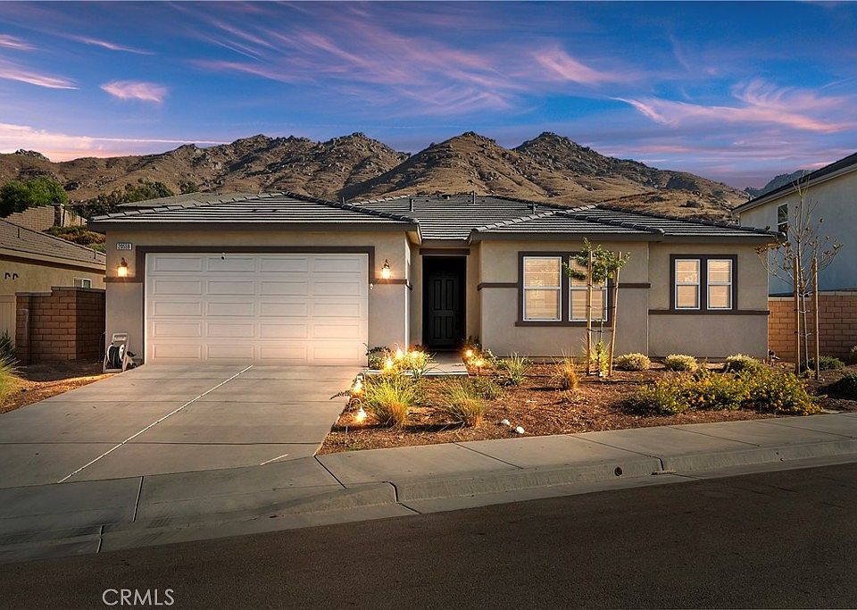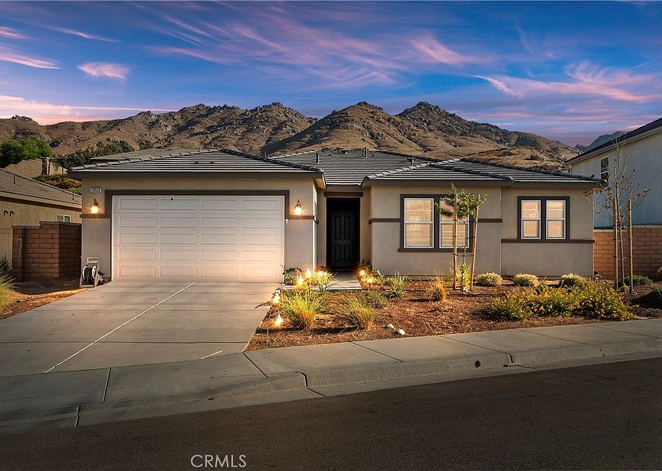 Welcome to your dream home at 20559 Leticia Circle, a stunning single-story home that was built in 2022, perfectly blending modern elegance with energy-efficient living. Nestled in the sought-after Spring Mountain Ranch community of Riverside, this beautiful property boasts a spacious open floor plan, ideal for both relaxed living and entertaining. Be ready to be wowed by the high-quality finishes and upgrades throughout. As you step inside, you will notice that the inviting living area flows seamlessly into the gourmet kitchen, featuring stainless steel appliances, sleek quartz countertops, backsplash and ample cabinetry for all your culinary needs. The adjacent dining area provides a perfect space for family meals and gatherings. This home offers 4 generously sized bedrooms, including a primary suite on the opposite side complete with a private en-suite bathroom and a walk-in closet. Thanks to the solar panels, you can enjoy the benefits of reduced utility bills while contributing to a greener future. Outside, the low-maintenance yard provides a blank canvas for your landscaping ideas or outdoor entertaining. With no HOA fees, you have the freedom to personalize your outdoor space as you see fit. This home offers the perfect balance of suburban tranquility and urban convenience, as it is conveniently located just minutes from the 91/215/60 freeways, UC Riverside, Loma Linda University Medical Center, Loma Linda Hospital and plenty more. Whether you’re a first-time homebuyer or looking to downsize, 20559 Leticia Circle is a true gem that you won’t want to miss. Schedule your private showing today!