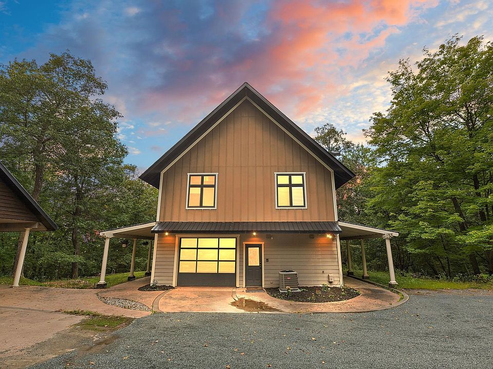 This one-of-a-kind quality home is sure to please anyone wanting something different from your standard cookie-cutter home. Uniquely designed architecture and amazing attention to detail. From the stamped concrete floors and driveway, to the 10’ ceilings, handcrafted doors, butler pantry, and carriage house, this home is a must-see. Enjoy the scenic master suite views featuring a large private tub, WIC with laundry, and a glass shower. The long wooded driveway adds to the seclusion you will find on this beautiful 5.5 ac lot. The open concept floorplan features in-floor heat along with Pella windows, central vac and central air. A large wrap-around screened-in deck is ideal for entertaining and offers great views of Lotus lake. The beautiful tucked-in glass “display” garage door adds to the unique characteristics of this home. The loft above the carriage house is great for storage or could be converted into additional space.