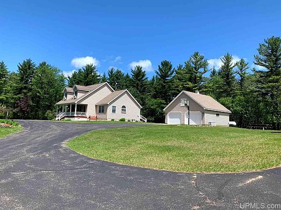 Beautiful well maintained and updated 3 bedroom home on 10 acres along 10 Mi creek. 2 car detached heated garage, large 2nd garage/barn with lean-to. Front & back decks to enjoy the sun & shade at anytime of the day. Updated kitchen with appliances and matching table/ bakers rack to stay. Hardwood flooring in formal dining room, main floor launder, large front foyer with half bath, large living room with patio doors out to back deck and master bedroom. Master bath has jet up to soak in. Upstairs are 2 more bedrooms & full bathroom. There is a finished family room in the basement with half bath.