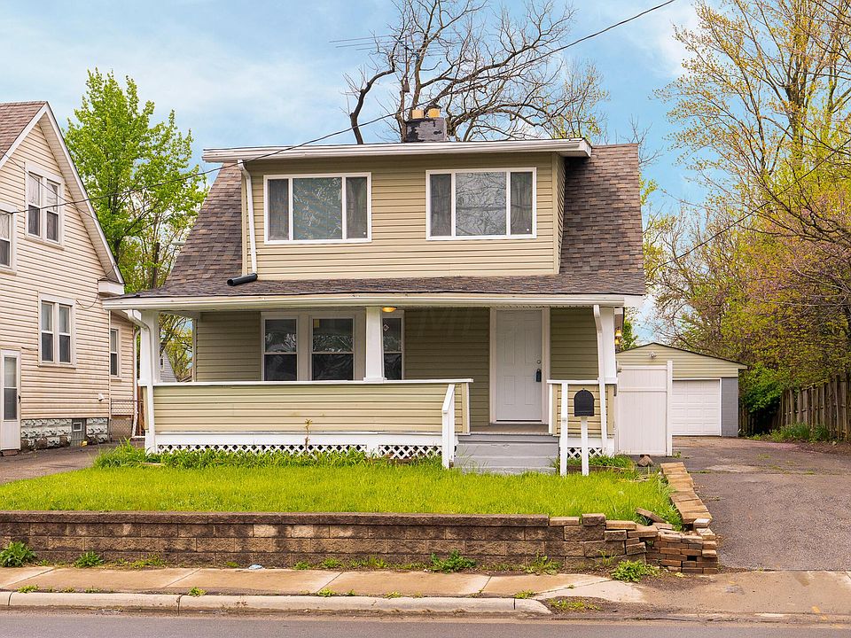Wonderful rehab! New, New, New!! Flooring, cabinets, kitchen, baths and more! Huge lemonade front porch. Nice sized living room with fireplace. Dining room. 1/2 bath on the first floor is new. Kitchen is all new including stainless steel appliances. Full basement with washer/dryer hookups. 2 bedrooms up and full, redone bath. The yard is BIG with 2 car garage. A great place to call home!!!