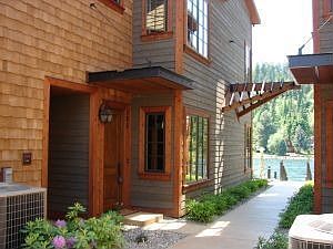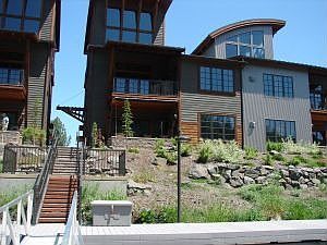 Right on the water. Main level unit. Super deck area w/outside fireplace. Has boat slip. Walk to shops, restaurants, theater.