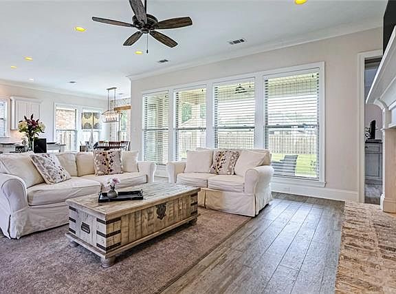 Breathtaking 3 yr old home by Hurley Homes built with lots extras. Home offers 4 large bedrooms 2 full bath, brick accents, shiplap above the fireplace, framed windows, drawer-style microwave, glass shower in master w/ separate relaxing tub. Wood-look tile throughout living area & in all bedrooms. Oversized mudroom and laundry room. Lots of windows overlooking large backyard with covered brick porch. Lots of pools throughout Bedico Creek community. Club house, walking trails. A must see!!