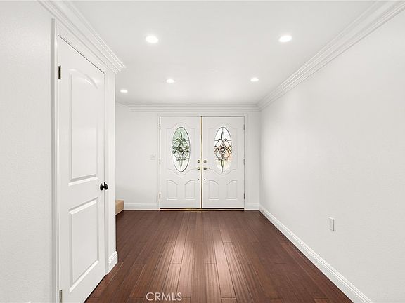 This exceptional Five Bedroom home with its sought after Main Floor Bedroom and Bathroom may be everything you've been seeking in a quality home. Fresh new paint to the entire interior and exterior of this home make a striking first impression. Double doors invite you into the welcoming formal entry. Rich wood flooring meanders through the entry and blankets the entire first floor as well as all five bedrooms. Solid core interior doors with quality hardware, smooth texture to all ceilings, recessed lighting, crown moldings, and upgraded baseboard make an elegant statement throughout this spacious home.The kitchen is truly at the heart of this home and has been remodeled with distressed brick flooring, solid wood Kraft Maid maple cabinetry, gleaming granite counters, a delightful garden window, plus a breakfast area with additional cabinetry offering a perfect serving counter and a lovely view to the back yard. Steps away is a formal dining room which opens to the immense living room with its charming ceiling fan, beautiful crown molding, lovely sculpted and newly installed carpet, plus a wide bank of windows that open to the impeccable front yard. Just a few steps down from the kitchen and nook is the intimate family room which features recessed lighting, french doors to the back yard, and an inviting brick fireplace. Completing the main floor tour is a sought after bedroom and a tastefully remodeled full bathroom with gorgeous travertine tile to the walls and flooring, basketweave travertine to the shower floor, frameless shower doors and lovely new cabinetry. The upstairs offers a brightly lit hall with ample cabinetry, plus three more secondary bedrooms and a wonderful Primary suite, each with wood flooring, upgraded baseboard, crown molding, ceiling fans, and plantation shutters. The primary suite has a large closet with built ins and is perfectly placed in the primary vanity area.. A gorgeous shower with 1' tile flooring and frameless shower doors add elegance and ease to the day to day. The outstanding exterior provides the perfect escape with an oversized spa and covered patio, meticulously manicured grounds which includes the expansive velvet lawn, a row of fruit trees, rose gardens, and a large side yard with a sturdy shed for extra storage. All of this plus a premium cul-de-sac location, the coveted Placentia Yorba Linda School schools, and popular Tri City Park. This is a home you won't want to miss!