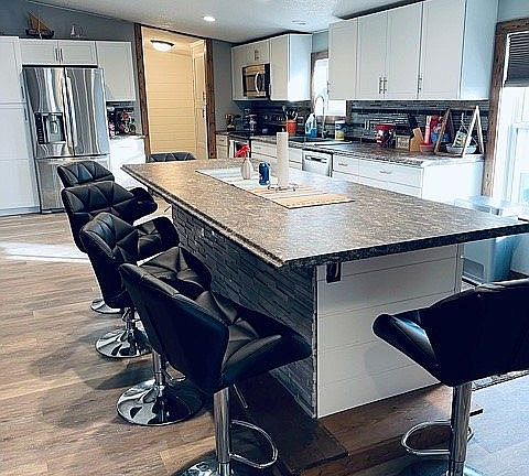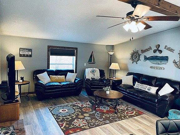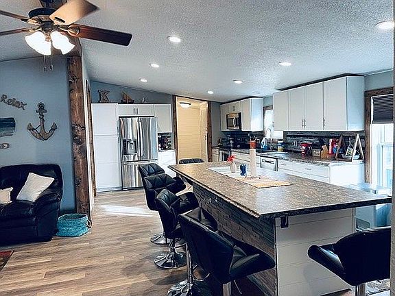Check out this completely updated home on Golden Lake with a huge kitchen that is perfect for entertaining! Brand new appliances with 2 full refrigerators, new water heater, central air unit, and furnace. New siding with added insulation and 3/4 inch plywood around the entire exterior. 3 bedrooms and 2 baths plus a bar with a lake view. Spacious lot with plenty of room for yard games by the lake. Propane is plumbed in on the deck for a grill and fire pit and additionally to the fire pit in the yard. Leased lot with rural water.