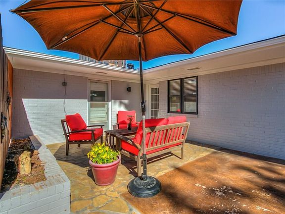 This Mid Century Modern home is located in the heart of OKC & move in ready! Minutes from Midtown, Paseo, the Plaza District & downtown OKC. Walking distance to Penn Square Mall. Remodeled inside & out! Kitchen has new cabinets, sink, faucet, subway tile back splash, granite counter tops, pantry, island, gas stove & vent hood. New interior paint & texture. New lighting, hardware & flooring throughout. The living room has wood laminate floors, a ceiling fan & built-in book cases. All windows have blinds! Plenty of storage space! The exterior has new paint, whole home guttering plus a 2017 new roof & decking, a covered front porch, an over sized driveway, fenced backyard, 2 large back patio areas & shed. Located close to shops & dining! Easy access to I-44, I-35 and Hefner Parkway. Please excuse the mess, the garage will be cleaned out & painted soon!