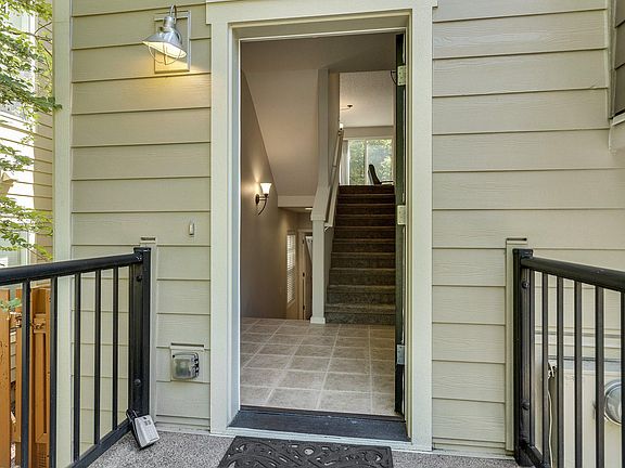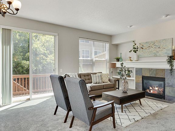 Open House Saturday 11-1:30. All new carpets & fresh paint in this cute End-unit townhome. Versatile floorplan w/3rd bdrm on lower level w/half bath could be office. Lots of windows for natural light, gas fireplace in LR w/slider to deck & stairs to prvt paver patio. S/S appliances, granite tile & eat bar in kitchen. Dining rm could be bonus. Primary suite + 2nd bedroom & bath upstairs. Washer/Dryer up. Community playground & easy access to parks, trails, shopping, public transport & freeways.