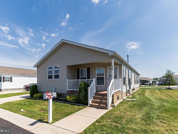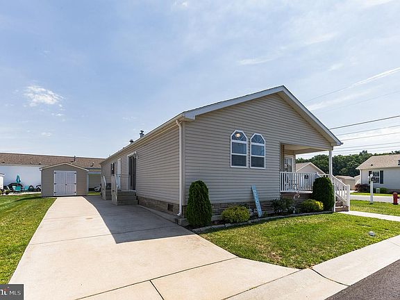 Welcome to Summerfields West! This home is nestled in the 55+ community and provides maintenance free living at its best! This is one of the largest homes the 3 bedroom wildflower model. The welcoming front porch greets you and leads you in the home. Enter the bright and spacious living room with gas fireplace and beautiful hardwood floors that span throughout most of the rooms. The adjacent dining room features French doors leading to the outdoors. Step into the amazing kitchen, complete with Island Maple cabinetry, center island, stainless steel appliances, tile backsplash, and separate sun room/eating area. The Master Suite offers a walk in closet and Master Bath providing dual sinks, stall shower, and soaking tub! There are two additional nice sized bedrooms and another full bath. Additional amenities includes full laundry room with wall cabinets and separate entry for convenience, driveway parking, and large shed for storage all on a corner lot. HOA Lot Lease includes Lawn care, snow removal, trash pickup, and beautiful recreation center access with an Olympic sized outdoor pool.