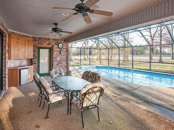 This beautiful country home & ranch setting is the ultimate equestrian estate located on 24.41+/- deeded acres in Madison County. The 2,600+/- sq ft custom split plan home overlooks a breathtaking stocked lake as well as a fully screened-in pool! High vaulted ceilings and solid wood walls, coupled with an open floor plan, provide a lodge like feel to the home. The living area is finished out with a large wood burning fireplace and panoramic window views overlooking the backyard and pool. The kitchen is a chef's dream with a triple sink, ice maker and Viking 6-burner gas cooktop. A massive island with granite countertops provides more than enough room for entertaining guests. A separate pantry is located just off the main kitchen. The master suite boasts a large bedroom, whirlpool tub, and tiled shower with multiple shower heads. The covered back porch sports custom built-in cabinetry that houses an outdoor sink and refrigerator for those summer pool days. There are several outbuildings on the property including a 20x45' insulated metal building w/two automatic garage doors. A separate outbuilding used as a tack room is furnished with electricity. There is a 4-bay horse stall that is fully fenced along with power and water also. A large pole barn was recently constructed, allowing for extra storage for hay, tractors, implements, and tools. The owner has installed a vast amount of new fencing and cross-fencing including a treated & stained wood fence around parts of the perimeter. The remainder of the property allows plenty of room to deer and turkey hunt in the pastures and mature hardwoods. This area of Madison County is known for trophy deer hunting and this tract is no exception as I found several rubs and scrapes while walking the property. Everything is in place here and priced to sell, so come land your dream property today!